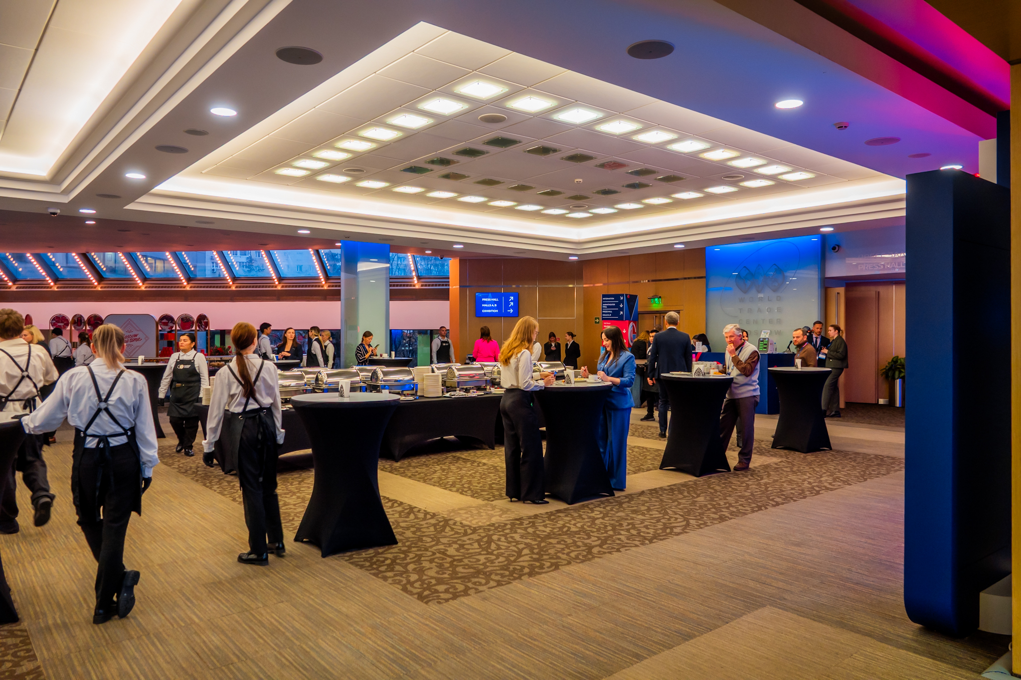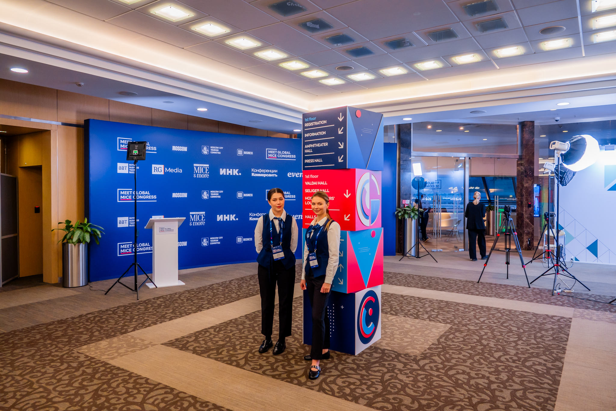 Мы создали полноценную экосистему форума, в которой проверенные методики умело переплетаются с инновационными и дизайнерскими решениями, а понятная и удобная навигация в паре с высококачественным сервисом оставляют только положительные впечатления от мероприятия. Зона аккредитации и встречи гостей, информационные стойки, зона конференц-залов для проведения рабочих сессий, зал пленарных заседаний, комфортные зоны кофе-брейков. Все локации оформлены в стилистике мероприятия и оснащены необходимым оборудованием и техникой. Выставочная экспозиция отвечает современным запросам индустрии, представляет собой удобные рабочие места, для комфортного делового общения и презентации компаний-участников.